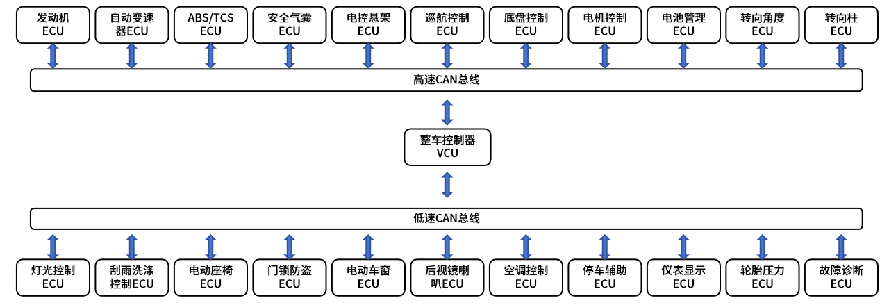 在汽车电子领域中,几乎所有的电子控制单元(ECU)都通过CAN收发器连接到CAN总线上,从而实现各电子控制单元(ECU)之间的协同交互。