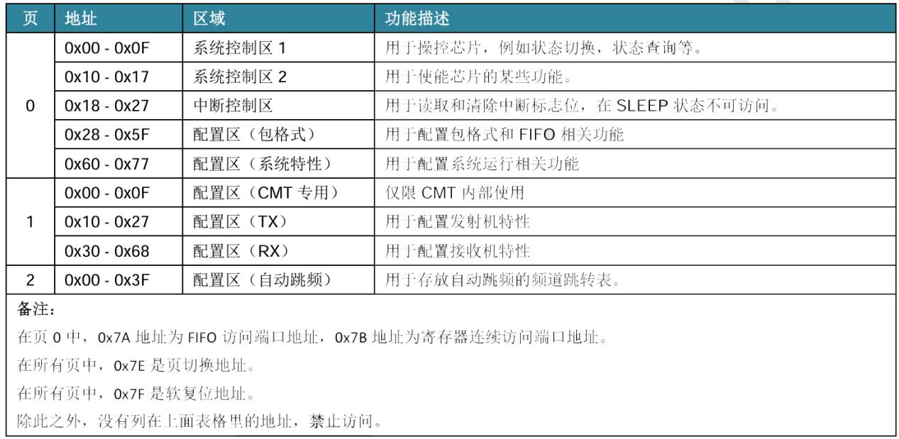 此外,CMT2310A提供SPI通讯接口,外部MCU可通过访问相关寄存器的方式来对芯片的各种功能进行配置,控制主芯片,并访问FIFO。